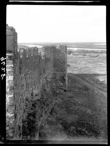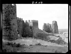 Part of a set of images taken by F.W. Hasluck in 1908 when he visited Aenos, Phocaea, Lemnos and Mytilene to document Frankish monuments. The original description in the SPHS register reads: "Aenos: N. walls & mouth of Mariza".