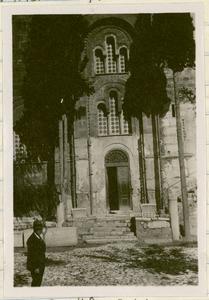 Katholikon - South elevation. The drawing is entitled: 'Church at Daphni near Athens', 'Elevation of South End, 1/4 Inch Scale'. The word: 'Daphni' is written in pencil at the back.