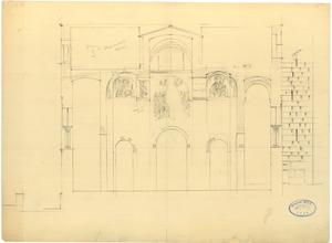Transverse section (narthex and crypt and part of the open portico). This is a preliminary drawing. Further annotation in pencil survives.