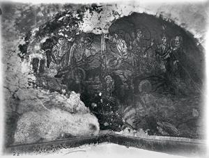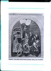 Part of the collection of images from the 1936 Exhibition of Minoan Civilization and the first 50 years work of the BSA at Burlington House, London. The original description in the SPHS register reads: "Daphni convent, mosaics: Entry into Jerusalem (Western wall of transept)".