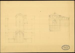 Transverse section, Part of elevation. This is a preliminary drawing. Further annotation in pencil survives.