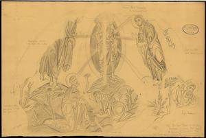 Katholikon, nave (squinch) - Mosaic decoration. The drawing depicts the scene of the Transfiguration which decorates the North-West Squinch of the nave. This is a preliminary drawing. Further annotation in pencil survives.