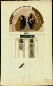 Katholikon, nave (squinch) - Mosaic decoration. The drawing depicts the scene of the Annunciation which decorates the north-east squinch of the nave. This is a preliminary drawing. Further annotation in pencil survives.