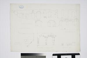 Parts of sculpture from a Pantokrator niche. This is a preliminary drawing. It is annotated in pencil.