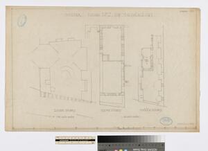 Plans of the Three Storeys. The drawing is entitled in pencil: 'Mistras House no 2(of the Palaeologi)'. It is labelled in pencil: 'Lower Storey', 'Upper Storey' and 'Middle Storey'. It is signed in the upper right-hand corner (W. George) in pencil.