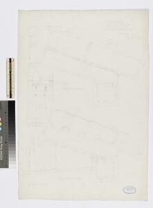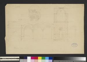 Parts of the sculpture decoration of the iconostasis (section and elevation of parts of piers). The drawing is entitled in pencil: 'Mistras Church of St. Demetrius'. Further annotation in pencil survives. The unfinished sketch of an elevation(?) survives in pencil on the reverse.