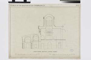 Longitudinal section. The drawing is entitled: 'Church of the Holy Apostles Thessalonica'. It is labelled: 'Longitudinal Section Looking North'.