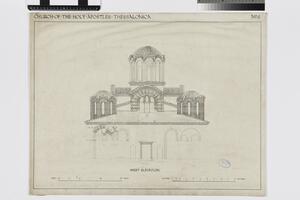 West elevation - North section. This is a preliminary drawing. It is labelled: 'The Church of the Twelve Apostles Salonica'. Further annotation in pencil survives.