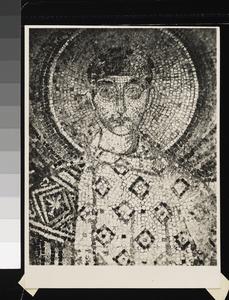 North inner aisle - Close view of mosaic decoration (Hagios Demetiros). The photograph is signed in pencil at the back: 'W.S.George'. Further annotation in pencil survives.