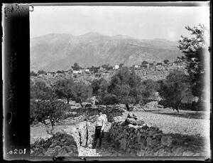 The original description in the SPHS register reads: "Mr. Atchley's numbering: 752. Crete. Omalo, looking back towards, fr. betw. Ahmainon & Canea".