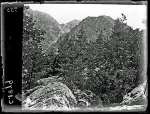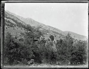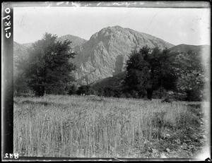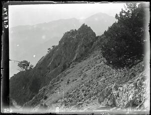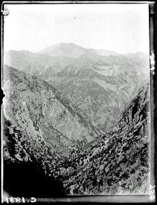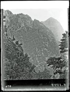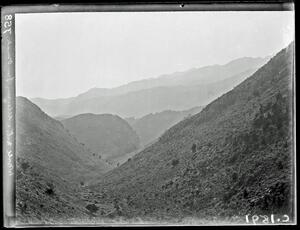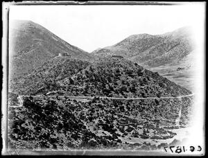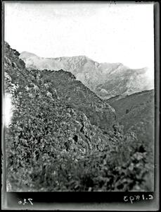 The original description in the SPHS register reads: "Mr. Atchley's numbering: 882. Crete. Omalo, Mts. of H. Rumeli gorge from; path to H.R. thr gap in centre foreground".