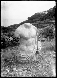 Part of a group of images from explorations and excavations on the island of Melos conducted by the British School at Athens from 1896 to 1899. The 'three churches site' was excavated in 1896. The original description in the SPHS register reads: "Melos: 3 churches site statue of woman (actually a man)".