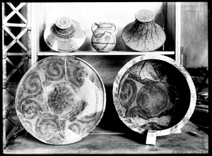 Part of a group of images from the continuation of excavations in 1910-1911 at Phylakopi on the island of Melos previously conducted by the British School at Athens from 1896-1899. The original description in the SPHS negative register reads: "Melos: native imitation of Cretan LM1". Listed as a Colour Slide in the SPHS negative register (A series), but the negative is black and white.