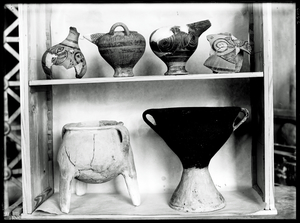 Part of a group of images from explorations and excavations on the island of Melos conducted by the British School at Athens from 1896 to 1899. The original description in the SPHS register reads: "Phylakopi pottery: Devil jug: naturalistic pot. (good examples) ".