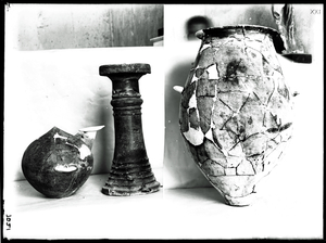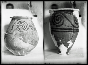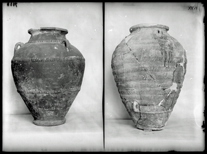 Part of a group of images from explorations and excavations on the island of Melos conducted by the British School at Athens from 1896 to 1899. The original description in the SPHS register reads: "Phylakopi: pithoi Phyl: (pl.xxiv,14,12.)".