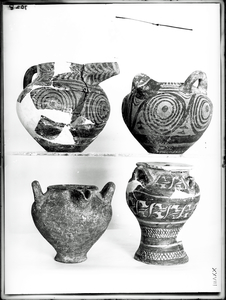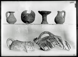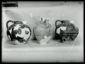 Part of a group of images from explorations and excavations on the island of Melos conducted by the British School at Athens from 1896 to 1899. The original description in the SPHS register reads: "Phylakopi: Mycenaean jugs etc. Phyl: pl.xxv".