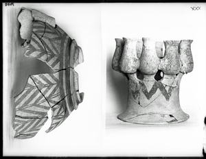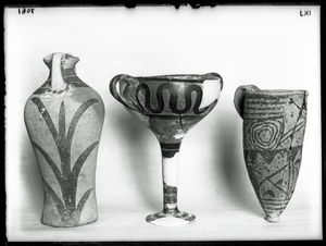 Part of a group of images from explorations and excavations on the island of Melos conducted by the British School at Athens from 1896 to 1899. The original description in the SPHS register reads: "Phylakopi: later local Mycenaean (Phyl: pl.xxix,1)".