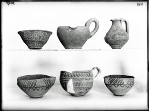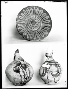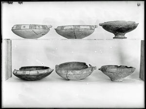 Part of a group of images from explorations and excavations on the island of Melos conducted by the British School at Athens from 1896 to 1899. The original description in the SPHS register reads: "Phylakopi: flat bowls with spouts. Phyl.pl.xxxiii".
