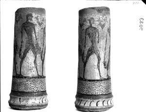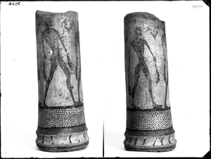 Part of a group of images from explorations and excavations on the island of Melos conducted by the British School at Athens from 1896 to 1899. The original description in the SPHS register reads: "Phylakopi: the fisherman lampstand Phyl: pls.xxii".