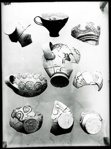 Part of a group of images from explorations and excavations on the island of Melos conducted by the British School at Athens from 1896 to 1899. The original description in the SPHS register reads: "Phylakopi: mostly black and red flowered vases".