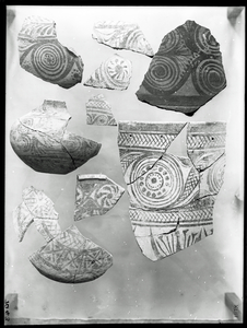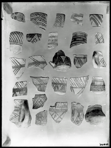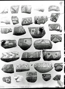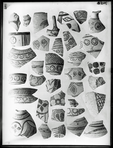 Part of a group of images from explorations and excavations on the island of Melos conducted by the British School at Athens from 1896 to 1899. The original description in the SPHS register reads: "Phylakopi: mostly geometric pottery (broken)".