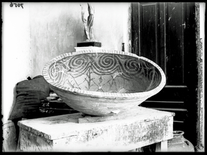 Part of a group of images from explorations and excavations on the island of Melos conducted by the British School at Athens from 1896 to 1899. The original description in the SPHS register reads: "Phylakopi: bath of terra cotta Phyl: pl.xxx,3".