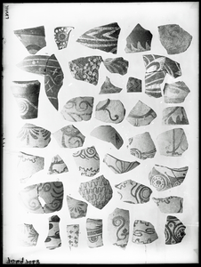 Part of a group of images from explorations and excavations on the island of Melos conducted by the British School at Athens from 1896 to 1899. The original description in the SPHS register reads: "Phylakopi: mostly black and red flowered fragments Phyl: pl.xxiii,xxvi".