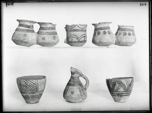 Part of a group of images from explorations and excavations on the island of Melos conducted by the British School at Athens from 1896 to 1899. The original description in the SPHS register reads: "Phylakopi: geometric pottery (Phyl: pls.vii,14,viii,14.)".
