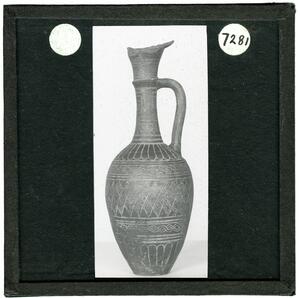 Part of a collection of images from the BSA excavations at Praisos, Crete in 1901. The original description in the SPHS register reads: "Praesos: late geometric jug (but in Kamares technique)".
