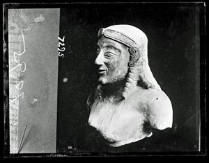 Part of a collection of images from the BSA excavations at Praisos, Crete in 1901. The original description in the SPHS register reads: "Praesos: young god".
