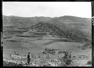 Part of a collection of images from the BSA excavations at Praisos, Crete in 1901. The original description in the SPHS register reads: "Praesos: view from tholos tomb".