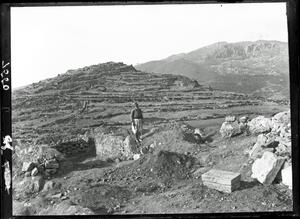 Part of a collection of images from the BSA excavations at Praisos, Crete in 1901. The original description in the SPHS register reads: "Praesos: altar hill, temenos wall".