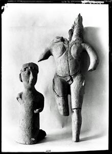 Part of a collection of images from the BSA excavations at Praisos, Crete in 1901. The original description in the SPHS register reads: "Praesos: terracotta statue (BSA VIII pl. XIII cf)".