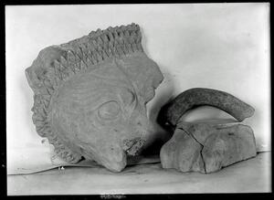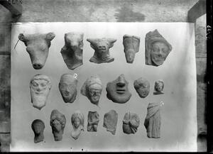 Part of a collection of images from the BSA excavations at Praisos, Crete in 1901. The original description in the SPHS register reads: "Praesos: mask of lion".