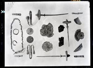 Part of a collection of images from the BSA excavations at Praisos, Crete in 1901. The original description in the SPHS register reads: "Praesos: silver jewelry".