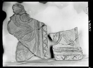Part of a collection of images from the BSA excavations at Praisos, Crete in 1901. The original description in the SPHS register reads: "Praesos: larnax fragments".
