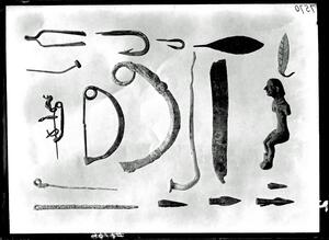 Part of a collection of images from the BSA excavations at Praisos, Crete in 1901. The original description in the SPHS register reads: "Praesos: bronzes (altar hill)".