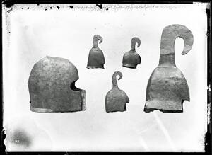 Part of a collection of images from the BSA excavations at Praisos, Crete in 1901. The original description in the SPHS register reads: "Praesos: miniature helmets".