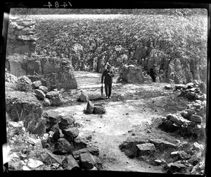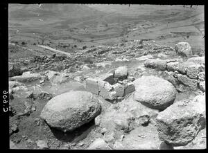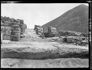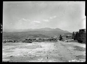 Part of a collection of images of the BSA's 1920s excavations at Mycenae. The original description in the SPHS negative register reads: "Mycenae, Palace, W. portal".