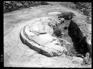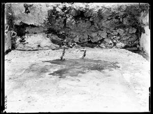 Part of a collection of images of the BSA's 1920s excavations at Mycenae. The original description in the SPHS negative register reads: "Mycenae, Palace: cement floor below Temple foundations".