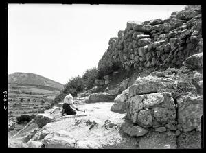 Part of a collection of images of the BSA's 1920s excavations at Mycenae. The original description in the SPHS negative register reads: "Mycenae, Palace at N.W. angle".