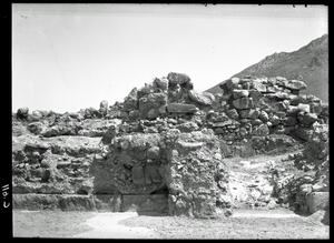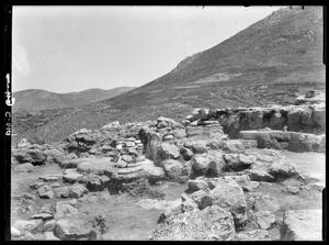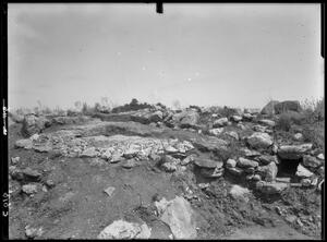 Part of a collection of images of the BSA's 1920s excavations at Mycenae. The original description in the SPHS negative register reads: "Mycenae, Palace, shrine".