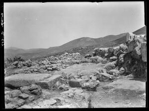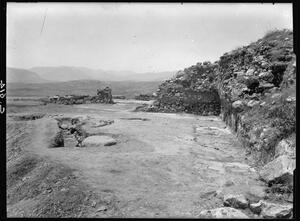 Part of a collection of images of the BSA's 1920s excavations at Mycenae. The original description in the SPHS negative register reads: "Mycenae, Palace court & Aithousa, N. side".