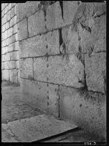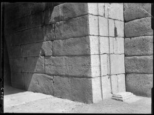 Part of a collection of images of the BSA's 1920s excavations at Mycenae. The original description in the SPHS negative register reads: "Mycenae, 'Treasury of Atreus' S. door jamb".