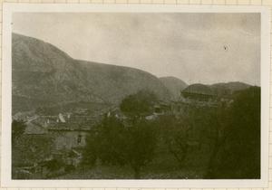 Katholikon - North elevation. This is a preliminary drawing. Further annotation in pencil survives. A sketch of a unidentified church survives in the upper left-hand corner.
