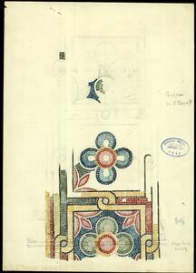 Katholikon, narthex - Mosaic decoration. Further annotation survivres at the back of the drawing. The note: 'mosaic border - over entrance into church' survives in pencil at the back.