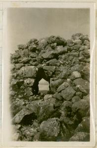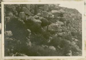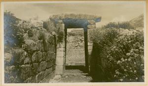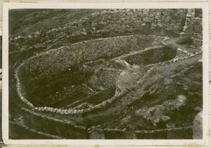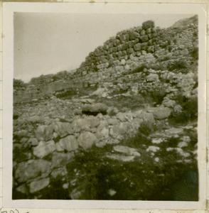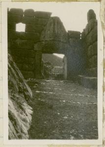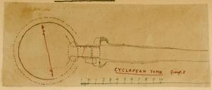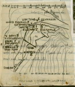 Photograph album compiled by John Pendlebury, containing plans and photographs of Tholos tombs in Mycenae and some other archaeological sites in the Peloponnese, with notes on the sites. Also contains other photographs and plans of Mycenae. The first page has the title of the album written on it as “The Tholos Tombs of Mycenae & elsewhere with The Citadel of Mycenae & its Environs.” Also includes loose photographs of Knossos [possibly prints of photographs from Arthur Evans], and a temple in Egypt.