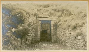 With a note that the gate was originally completely covered over, and that the gate led to a cistern outside the walls down to the right of the photograph.