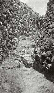 Part of a group of images donated by the Argonaut Camera Club, taken on excursions and cruises in Greece and Asia Minor. The original description in the SPHS register reads: "Mycenae: postern in N. Wall from within".