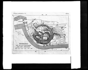 Part of a collection of images of the BSA's 1920s excavations at Mycenae. The original description in the SPHS register reads: "Mycenae: plan of grave circle ( Att. Mitt. Vol. XL.)".